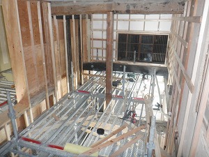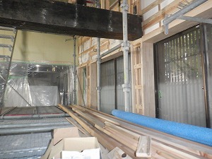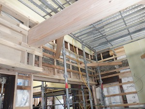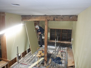 2025/9/2 吹抜け部分の井桁の飾り梁を撤去して 方杖を取り付け、補強しました。 |