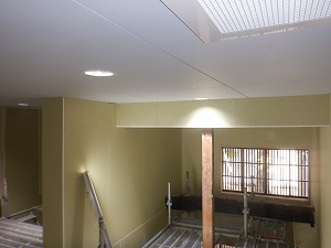 2025/4/1 吹抜け上部壁・天井ボード張り |