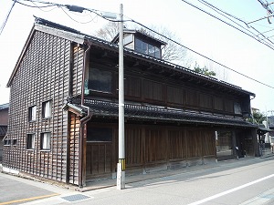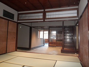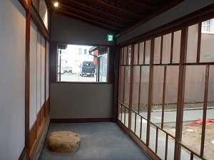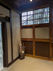 蔵前の坪庭 建物裏手の出入り口です。 |