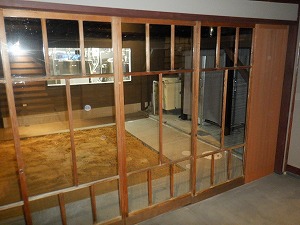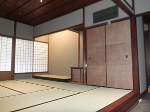 土縁から中庭 植栽はこれからの予定 |